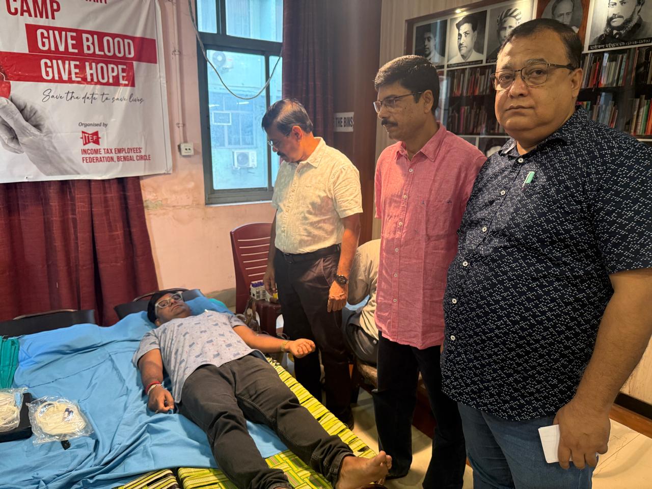 নিজস্ব সংবাদ: ইনকাম ট্যাক্স এমপ্লয়িজ ফেডারেশন (ITEF), বেঙ্গল সার্কেলের উদ্যোগে ৩০তম কমরেড পুষ্পেন্দু সেন স্মারক স্বেচ্ছা রক্তদান শিবির অনুষ্ঠীত হল কলকাতার ধর্মতলায় আয়কর ভবনে। বুধবার শিবিরে ৪৫৬ জন রক্তদাতা স্বতঃস্ফূর্তভাবে রক্তদান করেছেন, যা নিঃসন্দেহে একটি বড় সাফল্যের নজির। আজকের শিবির শুরুর আগেই কলকাতার অন্যান্য শিবিরগুলিতে ২৮৪ জন রক্তদাতা রক্তদান করেছিলেন। আজ দিনের শেষে সংখ্যাটি ছাড়িয়ে যায় ৪৫০-এর গণ্ডি। উল্লেখযোগ্যভাবে, মহিলা রক্তদাতাদের অংশগ্রহণ ছিল চোখে পড়ার মতো, যা সমাজের সচেতনতার ইতিবাচক দিক তুলে ধরে। এই অনুষ্ঠানে উপস্থিত ছিলেন আয়কর দফতরের বিশিষ্ট আধিকারিকরা, ITEF-এর নেতৃত্ব, এবং অন্যান্য কর্মীবৃন্দ। তাঁদের সক্রিয় সহযোগিতায় ও আন্তরিক প্রচেষ্টায় এই কর্মসূচি সফলভাবে সম্পন্ন হয়। ITEF শুধু কলকাতা নয়, সারা বাংলার বিভিন্ন মফঃস্বল অফিসেও এই ধরনের স্বেচ্ছা রক্তদান শিবির প্রতিবছরই আয়োজন করে থাকে। সামাজিক দায়বদ্ধতার জায়গা থেকে ITEF বরাবরই এই ধরনের মানবিক উদ্যোগে অগ্রণী ভূমিকা পালন করে এসেছে। বর্তমান সময়ে, যখন রাজ্যের বিভিন্ন ব্লাড ব্যাঙ্ক এবং হাসপাতালগুলিতে রক্তের অভাব প্রকট আকার ধারণ করছে, তখন এই ধরনের স্বেচ্ছামূলক রক্তদান শিবির সমাজের জন্য অত্যন্ত গুরুত্বপূর্ণ বলে জানিয়েছেন আয়কর দপ্তরের পশ্চিমবঙ্গ ও সিকিম রিজিয়নের প্রিন্সিপ্যাল কমিশনার সুরভি বর্মা গর্গ। উপস্থিত ছিলেন কমিশনার(এডমিনিস্ট্রেশন) এ কে সিং।