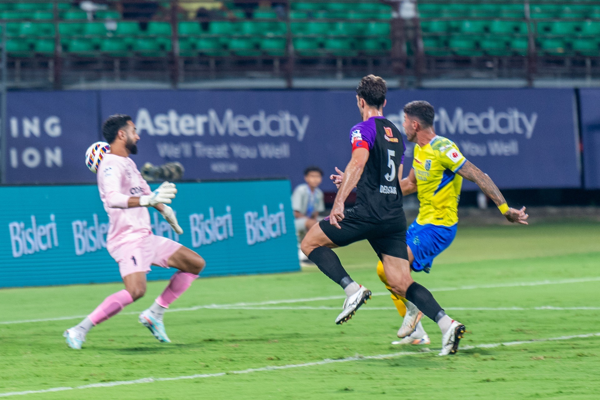 The Tuskers continued to press, with Bertomeu testing Amrinder Singh again moments later, while Arsh Anwer Shaikh remained alert at the other end to deny Rahim Ali during Odisha’s first meaningful attack. Despite Kerala’s early dominance, Odisha gradually grew into the game, enjoying more possession and probing for openings. Their persistence paid off in the 27th minute when Rahim Ali finished a well-worked move, combining neatly with Hitesh before firing a composed effort into the bottom corner to bring the visitors level. The remainder of the first half saw both sides exchange chances, with Francisco Feuillassier and Nihal Sudheesh going close for Kerala, while Odisha continued to threaten on the counter through Rahim Ali. However, neither side could find the breakthrough before the interval.