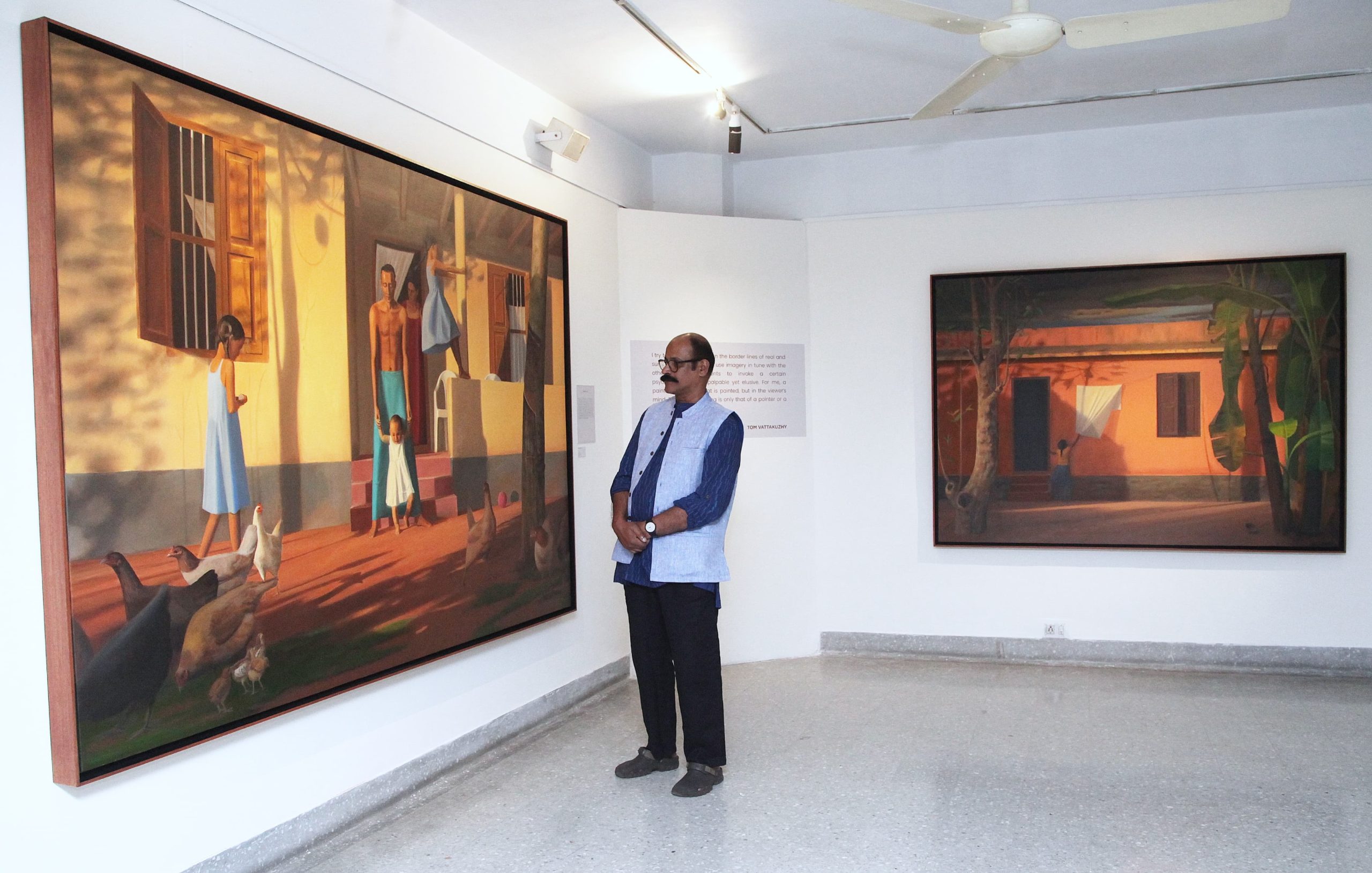 কেরালায় জন্ম, শান্তিনিকেতন ও বড়োদা-তে শিক্ষা এবং বিদেশে দীর্ঘ সময় কাটানো টম ভট্টাকুঝির শিল্পজীবন সাহিত্য, মানবতাবাদ এবং সমাজচেতনার দ্বারা গভীরভাবে প্রভাবিত।তাঁর আলোকোজ্জ্বল অথচ সংযত চিত্রভাষা একদিকে যেমন রেনেসাঁ যুগের বাস্তববাদের কৌশল বহন করে, তেমনি তাতে থাকে সূক্ষ্ম স্যুররিয়াল উপাদান ও কেরালার গৃহজীবনের অন্তরঙ্গ নির্জনতা। এই প্রদর্শনীর বিশেষত্ব ছিল তাঁর সাম্প্রতিক ১৬টি মূল শিল্পকর্মের একত্র উপস্থিতি, যেগুলি এর আগে ভারতে কখনও দেখানো হয়নি। এই চিত্রগুলির মাধ্যমে দর্শকরা টমের শিল্পচর্চার আবেগপ্রবণতা ও গঠনশৈলী উভয়ের সঙ্গেই ঘনিষ্ঠ সংযোগ স্থাপন করতে পেরেছেন। তাঁর শিল্পকর্মে ফুটে উঠেছে ব্যক্তিগত স্মৃতি ও সামাজিক ইতিহাস—বিশেষ করে পরিবর্তিত কেরালার প্রেক্ষাপটে। যখন চিত্রকলার গুরুত্ব নিয়ে প্রশ্ন উঠছে ডিজিটাল যুগে, তখন ‘দ্য শ্যাডোজ অব অ্যাবসেন্স’ নিঃশব্দে কিন্তু দৃঢ়ভাবে প্রমাণ করেছে এই মাধ্যমের গভীরতা ও প্রাসঙ্গিকতা। প্রখ্যাত শিল্পবিদ অধ্যাপক আর. শিবকুমার বলেছেন – “টম ভট্টাকুঝি একজন ব্যতিক্রমী শিল্পী, তিনি পরিচিত বাস্তব জগৎকে এমনভাবে চিত্রিত করেন যা অতীতের পাশ্চাত্য শিল্পীদের স্মরণ করায়, কিন্তু তাঁর চেতনা একেবারে আধুনিক।” এই প্রদর্শনী তাঁর শিল্পযাত্রায় একটি স্মরণীয় অধ্যায় হয়ে রইল। এই প্রদর্শনীটি কিউরেট করেছেন বিশিষ্ট শিল্পতত্ত্ববিদ প্রফেসর আর. শিবকুমার, যিনি সংবেদনশীলভাবে টমের কাজকে বৃহত্তর শিল্প ও সংস্কৃতি ইতিহাসের প্রেক্ষিতে উপস্থাপন করেছেন, আবার একই সঙ্গে তাঁর ব্যক্তিগত ভাবনার গভীরতাকেও গুরুত্ব দিয়েছেন।