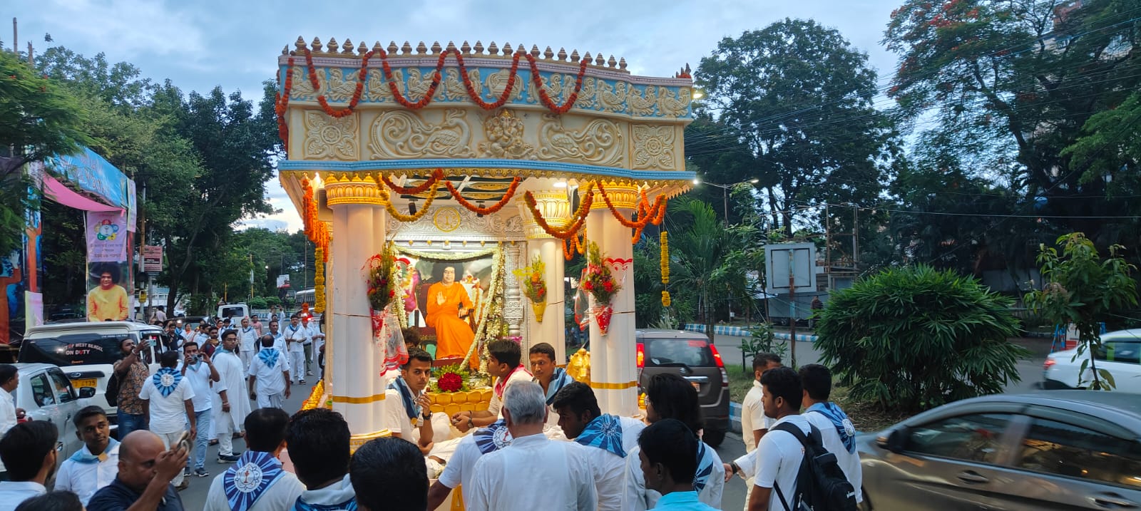 The yatra reached West Bengal on June 1 and since then, the Chariot has traversed all the 23 districts to reach Kolkata on June 22nd spreading the message of love, peace, and selfless service. The first phase of the Divine journey gets completed on 25 June, thereafter Bhagawan Sri Sathya Sai Baba in the form of Sri Sathya Sai Prema Pravahini, resting at State Centre of West Bengal for 15 days at Sri Sathya Sai Seva Kendra, 1, Riverside Road, Barrackpore from 26 June to 10 July 2025. During this period multifarious activities and programme such as Ati Rudra Maha Yagna for World peace, Chanting of Rudram, as also congregation of followers of differentreligions such as Muslims, Sikhs, Hindus and Christians will take place at Barrackpore so that they may celebrate the occasion according to their own religious practice.