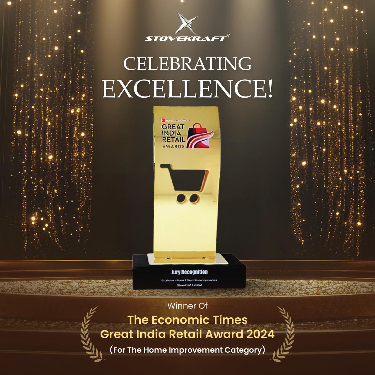 Kolkata, 28th February 2025: Stove Kraft Limited, a leading name in the home and kitchen solutions sector, has been recognized for its outstanding contribution to the industry at the 2nd Edition of the ET Great India Retail Awards 2025 (#ETRETAILGIRA). The company was honored in the “Excellence in Home & Decor/Home Improvement” category, reaffirming its commitment to innovation, quality, and customer-centric retail expansion. With a steadily growing footprint, Stovekraft now operates 250 stores across India, reinforcing its dedication to making high-quality kitchen and home solutions more accessible. The company’s expanding franchise network has played a crucial role in this growth, allowing entrepreneurs to be part of a trusted brand while ensuring a seamless shopping experience for consumers. Reflecting on the achievement, Mayank Gupta, Chief Growth Officer at Stove Kraft Limited, said, “This recognition is a testament to our commitment to bringing thoughtfully designed and high-performance home solutions to Indian households. As we expand our retail presence, we prioritize quality, innovation, and affordability. Our success is deeply rooted in our customers’ trust and the unwavering support of our franchise partners, who are instrumental in our journey.” The award highlights Stovekraft’s sustained efforts in reshaping the home and kitchen retail landscape, blending technology, design, and customer insights to enhance the shopping experience. As the company charts its next growth phase, it remains focused on strengthening its market presence and deepening its engagement with consumers nationwide.
